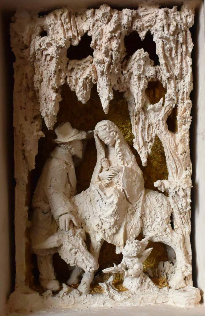 'De Vlucht' is een veel voorkomend thema bij Héman in twee- en driedimensionaal werk. Hier een van de 4 (?) gelijksoortige reliefs, kerstcadeaus voor zijn de kinderen in de jaren 70.
