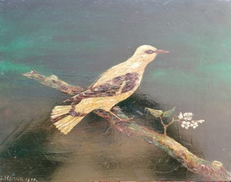 Begin januari 2024 meldde de eigenaar het bezit van een aardig paneeltje met daarop een wielewaal. Het is een erfstuk waar hij in zijn studeerkamer dagelijks naar kijkt. Aan de achterkant bevindt zich een notitie over de schenking in 1992.