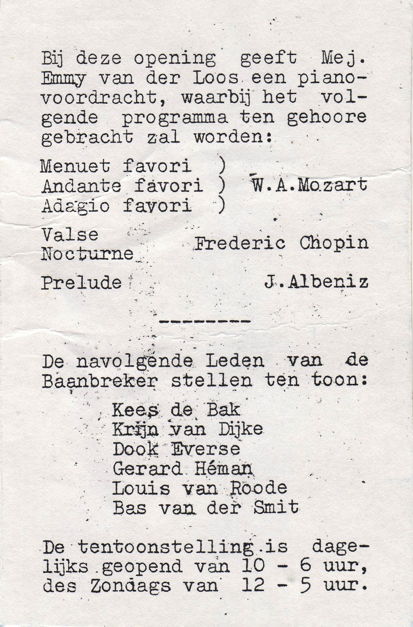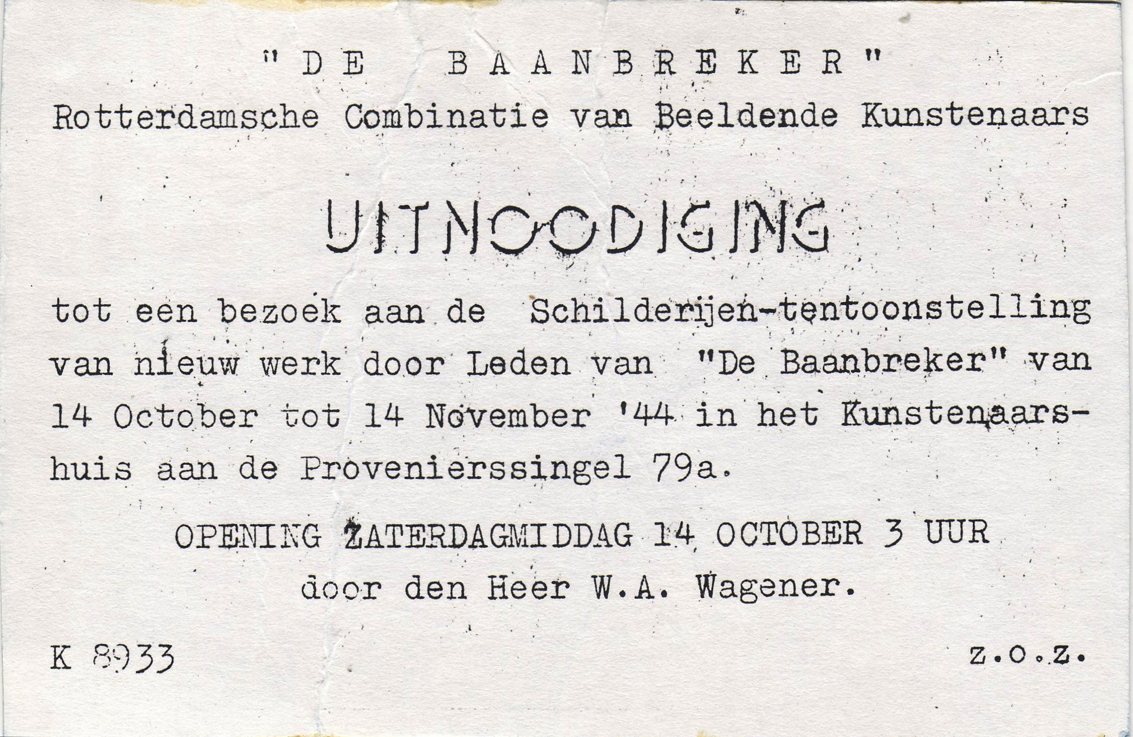 Uit de achterzijde blijkt dat Héman dit werk in 1949 speciaal voor W. Wagener maakte. W.A.Wagener (1901-1968) was in Rotterdam een bekend schrijver en journalist van het Rotterdamsch Nieuwsblad. Hij schreef o.a.het boek dat in de na-oorlogse jaren in veel Rotterdamse huishoudens aanwezig was: 'Rotterdam Onherroepelijk'(1963). Maar daarvoor had hij in 1942 Héman genoemd in het Rotterdamsch Nieuwsblad. In oktober 1944 opende Wagener een expositie van zes 'Baanbrekers' aan de Provenierssingel, daar exposeerde o.a. Gérard en trad Emmy van der Loos (Hémans latere vrouw) op als pianiste. Hij schreef in 1948 over Hémans werk aan het Rabover-gebouw en het jaar daarop over Hémans Utrechtse solo-expositie.