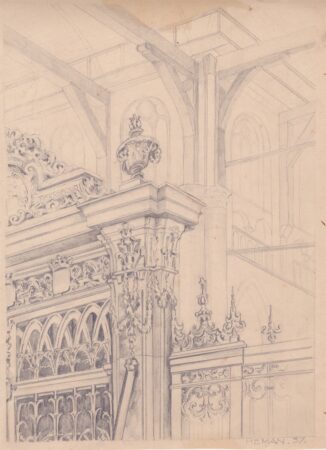 zie ook de tekeningen Engel in Rosaliakerk, Preekstoel in Rosaliakerk, Interieur Laurenskerk.