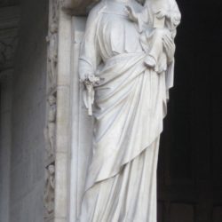 De driedimensionale, sculpturale uitbeelding van een zittende of staande Maria, meestal met Kind, noemen we Madonna.